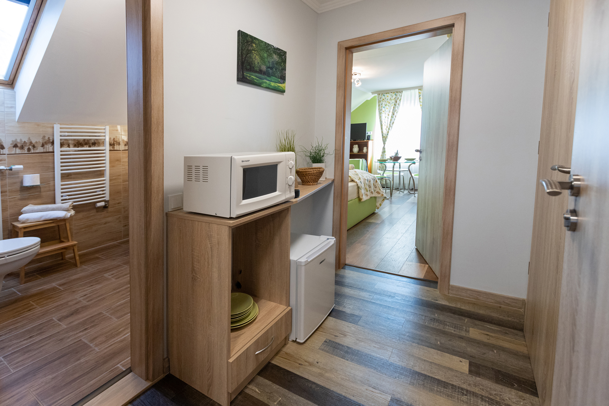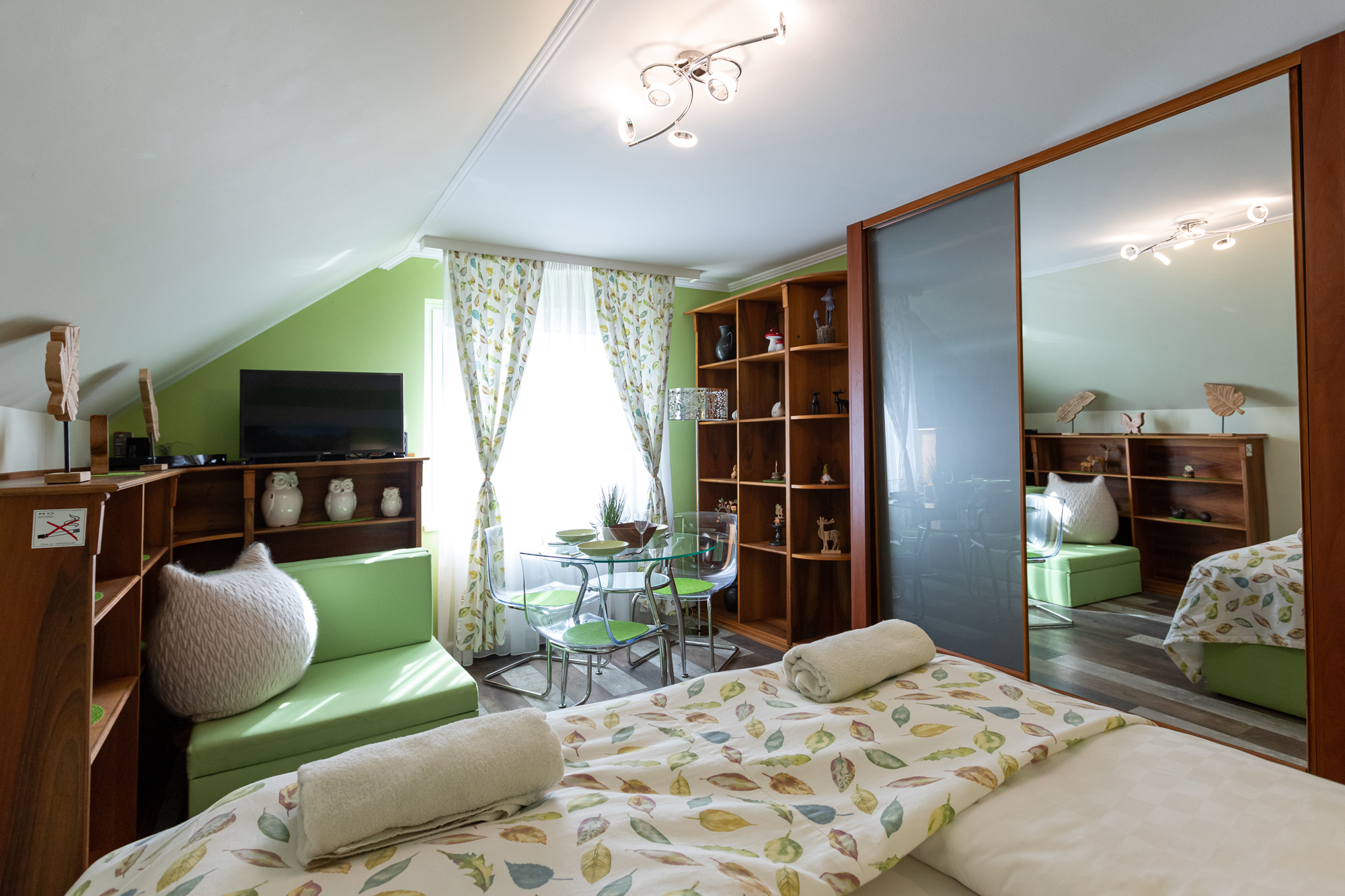 A Napsugár apartman, illetve a Koloska szoba igény esetén összenyitható.